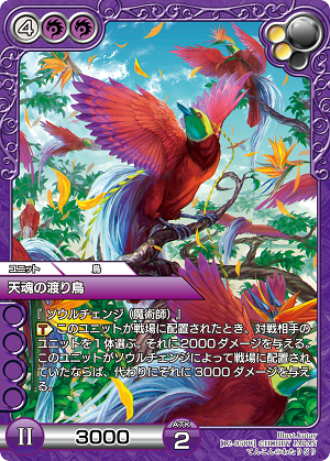 フツーに出すとユニットに2000ダメージ。ソウルチェンジなら代わりに3000ダメージと