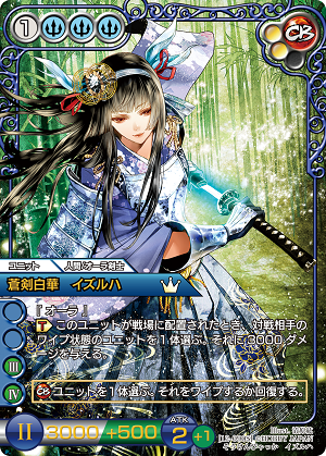 特にいいところもなく押しつぶされて負けました。相手の《蒼剣白華 イズルハ》ブロックで相討ち、戦闘続行ステップに《諸葛亮》で《蒼剣白華 イズルハ》を出されて盤面崩壊したのが一番の見どころでした。