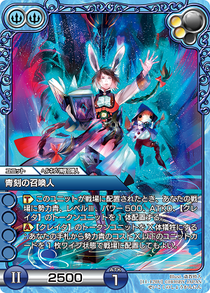 特に《青刻の召喚人》は便利。《青光の竜人術師 サァラ》がいる状態で相手ターンにクレイタを生み出す【魔術師】を出せば、クレイタの消費を抑えつつタダでユニットを展開できるわ。
