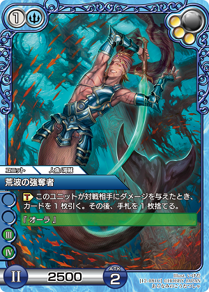 さて、前置きはここまでにしてデッキを考察よ! 今回は新しく登場した青黒の組合せね。青の低コストユニットでビートして、時代IIIからはオーラ集団で攻めるデッキね。