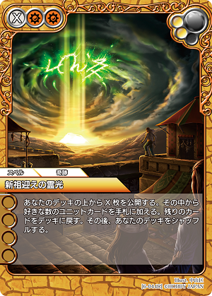 あとは《神青満ちし青陽》や《水縄の束縛》で相手のオーラユニットをどかしつつ攻める! といったカンジかしら。確かに白黒デッキでは対処するのが難しい量のオーラユニットね。