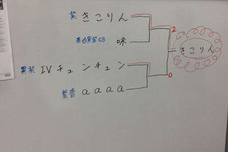 決勝戦は、スイスラウンドを一位で突破した1stシーズンチャンピオンである「きこりん」氏と、そのきこりん氏に予選ラウンドで唯一土をつけた一週間前のツアー高崎の優勝者aaaa氏を倒した「IVチュンチュン」氏で争われました。