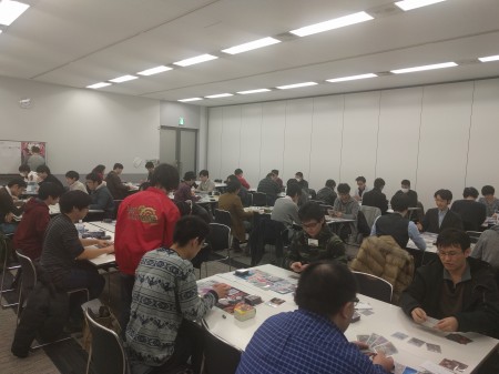 陽光編Ⅳが発売されてから日も浅く、さまざまなタイプのデッキが試されているように見られました。予選3回戦目の時点でみても、上位テーブルには「青単」「紫単」「黒コントロール」「白黒」「白紫」「青紫音楽家」といったバラエティに富んだ対戦がなされていました。