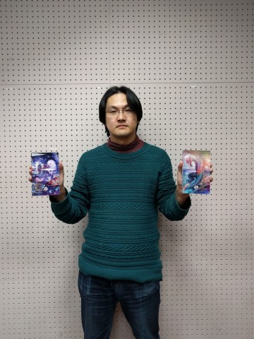 決勝戦の組み合わせは前日と同じくけんあんしこうさんとの対戦となりました。お互い、デッキの軸となる部分は橙となっており、がっぷり四つになりがちかと思われましたが、昇華により《目覚めし黄金覇者 アルマイル》を即配置し、それによるパワー差で序盤を優位に進める展開、また対処することが難しそうな《勇爪の戦姫 カリンナ》をめぐる攻防など、見どころの多い戦いだったと思います。